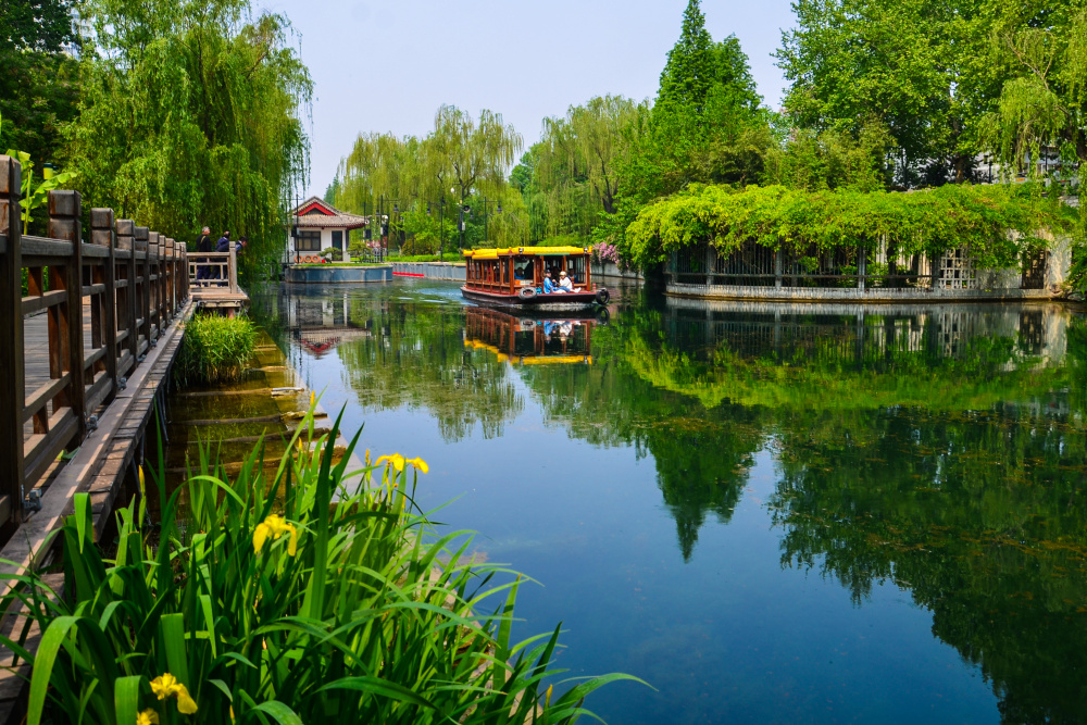 五月,氣溫回升陽光暖人,既沒有早春時(shí)節(jié)的寒風(fēng)拂面,也不像盛夏季節(jié)的烈日炎炎,微風(fēng)吹過,涼爽宜人。眼下的護(hù)城河綠水逶迤,花鳥為鄰。乘坐游船,家門口的“詩和遠(yuǎn)方”意境正濃。