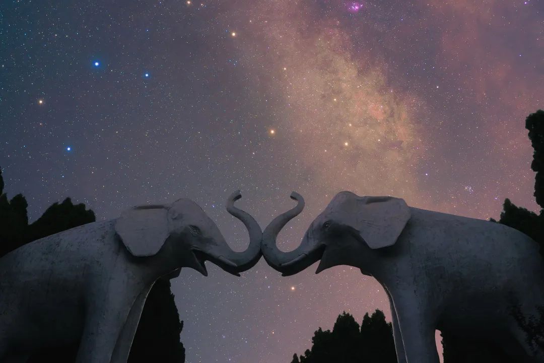 與獸同眠夜晚觀浩瀚星空