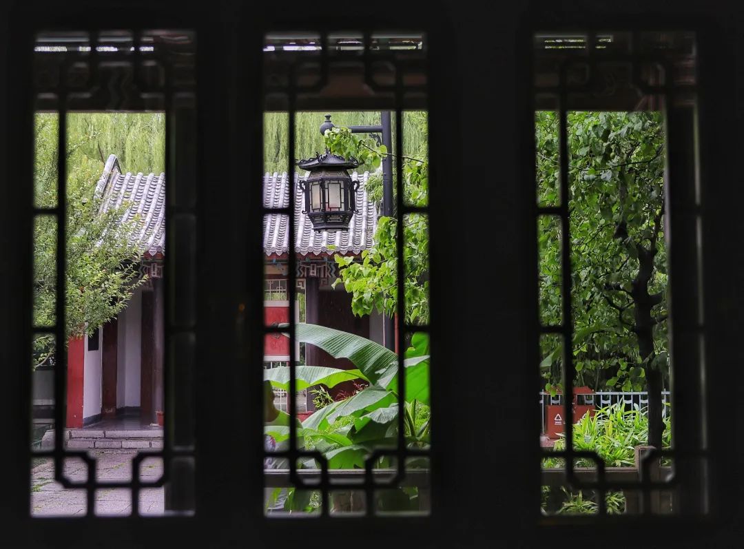 雨中的趵突泉,雨滴順著古色建筑屋檐落下,滴滴答答地奏著動聽的心音,滴落在屋檐下的芭蕉葉上,別有風韻。