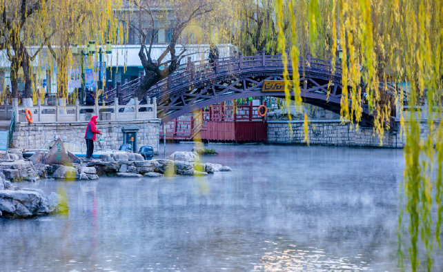 雖沒有期盼中的大雪紛飛與銀裝素裹,此時卻另有一番風情,裊裊晨霧、水汽蒸騰,這是屬于濟南冬天的獨特景致。