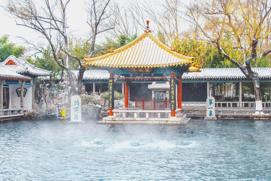 由于泉水溫度常年18℃,在冬日時節(jié),泉水遇冷凝結(jié)成水汽,仿佛云霧一般漂浮在水面上,形成“云霧潤蒸”景觀
