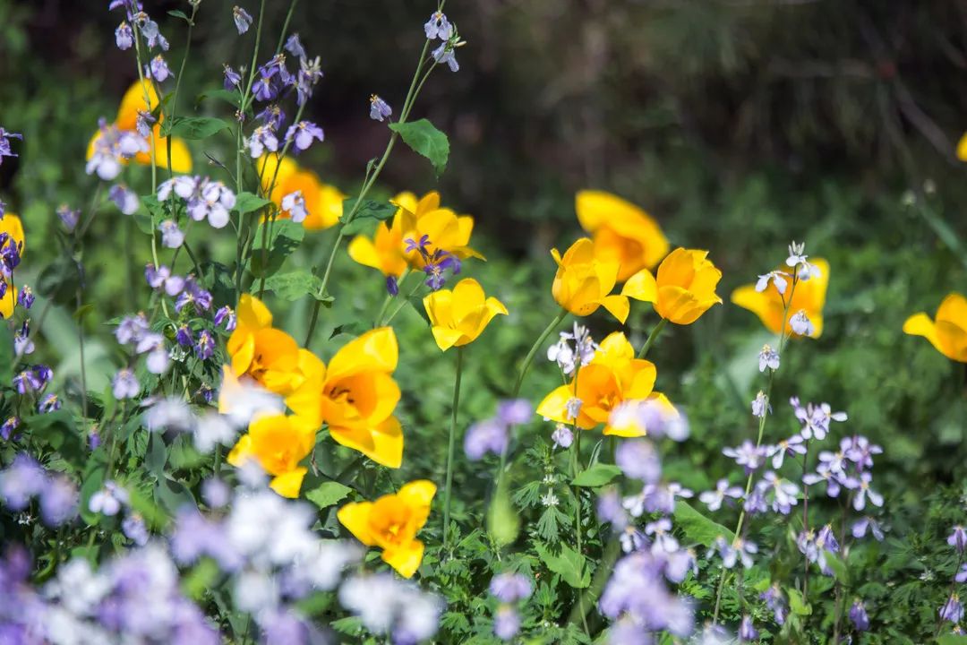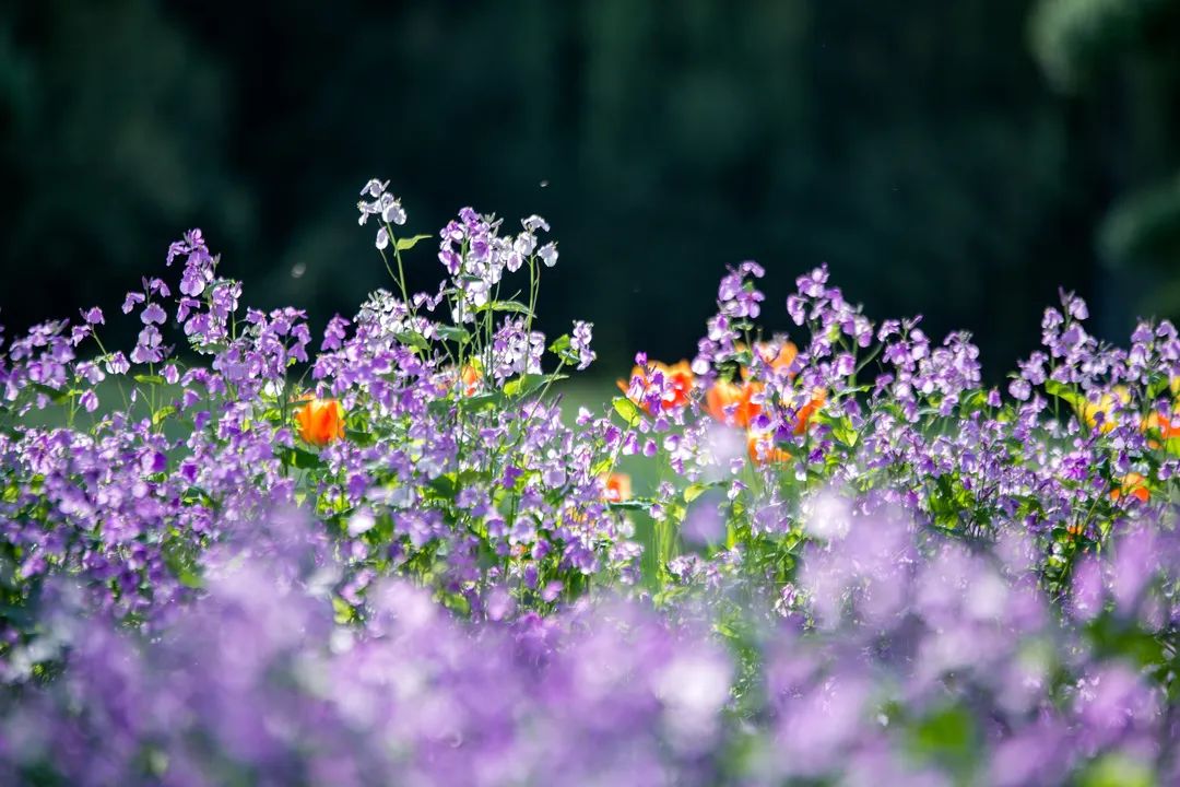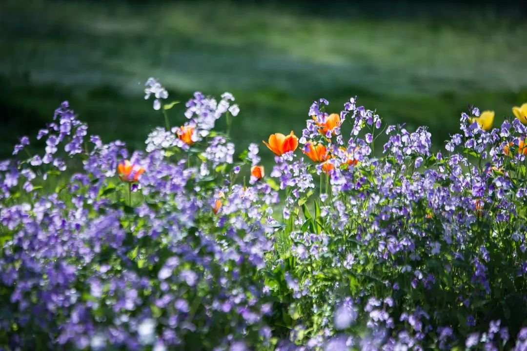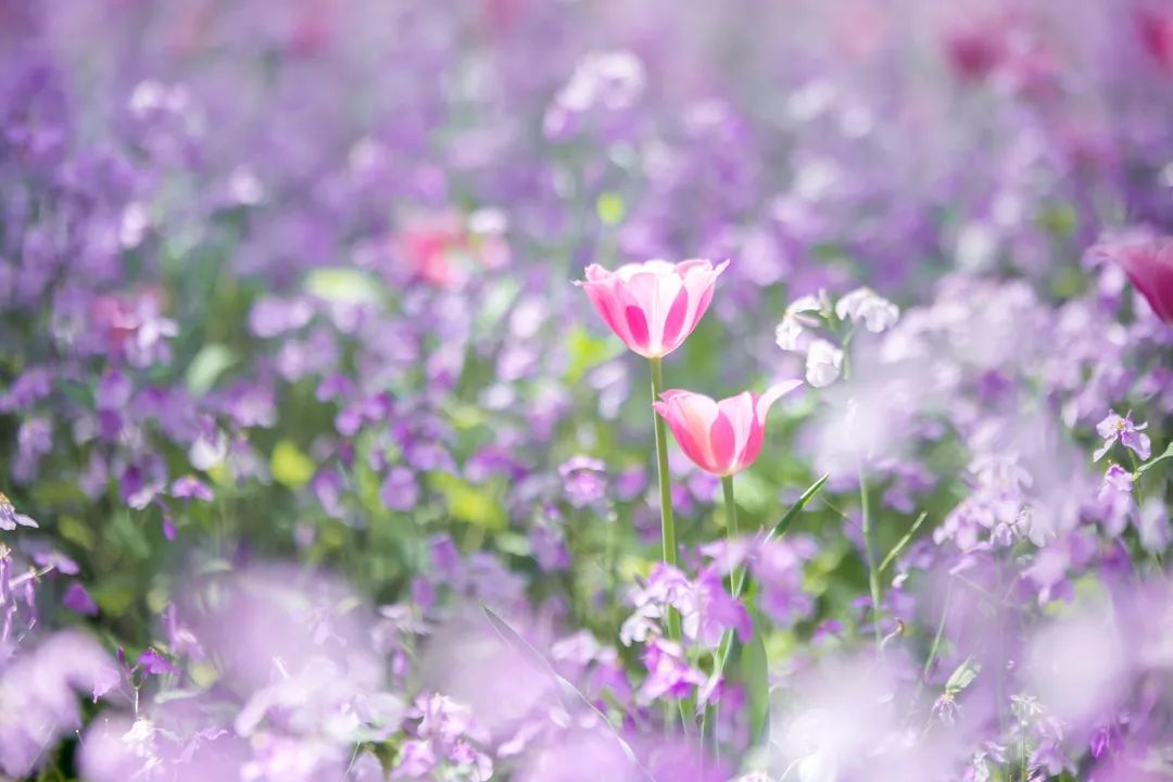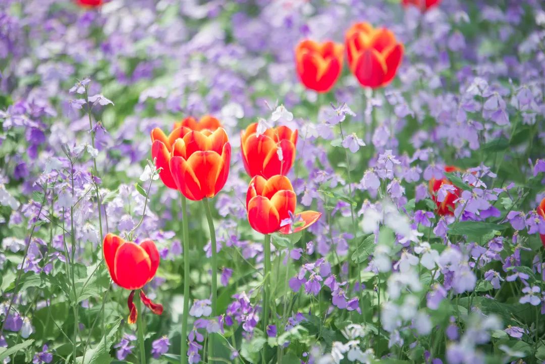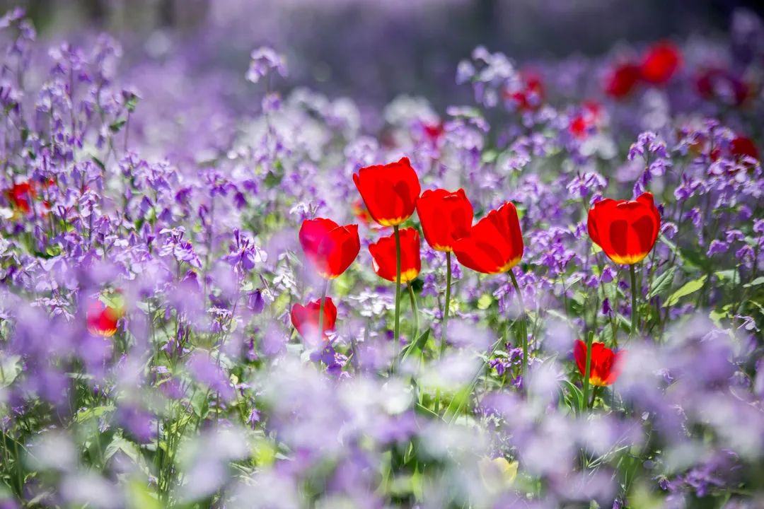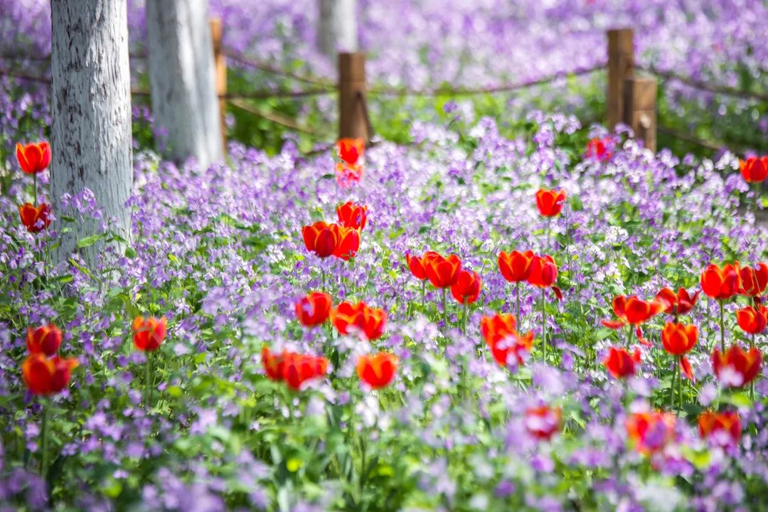 讓郁金香在藍(lán)紫色的二月蘭花海中