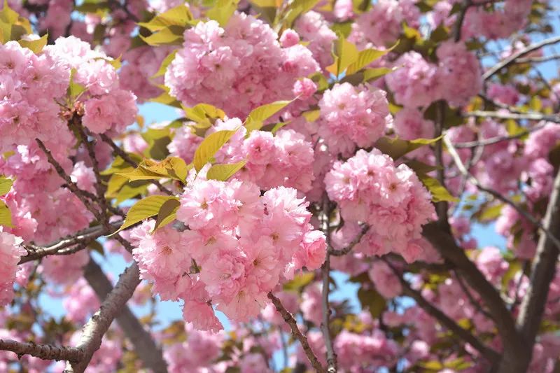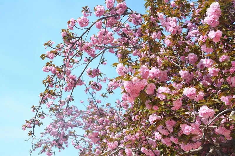 此時(shí),正在盛開(kāi)的粉紅色櫻花