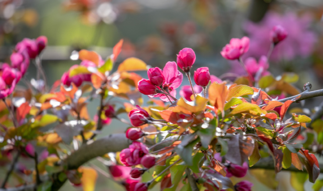 二月蘭、海棠、郁金香等正在盛開(kāi)