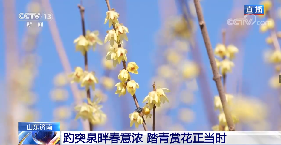 在正對(duì)著公園核心景觀“趵突騰空”的濼源堂門口,和公園東南角的“滄園”里面,蠟梅花開得正好。鵝黃的花朵開滿枝頭,香氣濃郁。蠟梅花期很長(zhǎng),從春節(jié)前一直開到現(xiàn)在。徜徉在趵突泉公園里,各色鮮花與古色古香的建筑物、靈動(dòng)清澈的泉水相映成趣,一切都是這么春意盎然,生機(jī)勃勃。(來(lái)源 央視新聞)