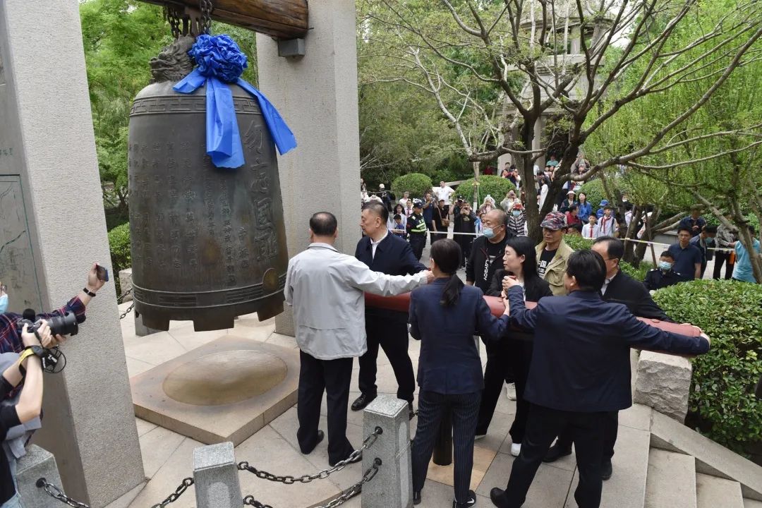 隨后,參與活動的領(lǐng)導嘉賓共同敲響了五三鐘,上午10時,全市鳴放防空警報,以此紀念國殤。