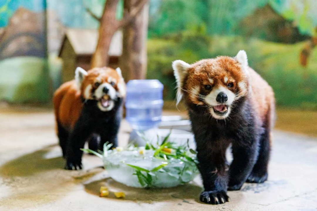 目前,濟(jì)南已進(jìn)入35℃+的“桑拿天”,高溫酷暑天氣下濟(jì)南野生動物世界的超級“奶爸奶媽”各顯神通,“送冰塊、開噴淋、調(diào)飼料、空調(diào)房”等“降溫奇招”保證動物健康舒適地度過酷暑天,此外,大熊貓館設(shè)有空調(diào)系統(tǒng)24小時冷氣及冰塊輸送,保證動物們舒適度夏。