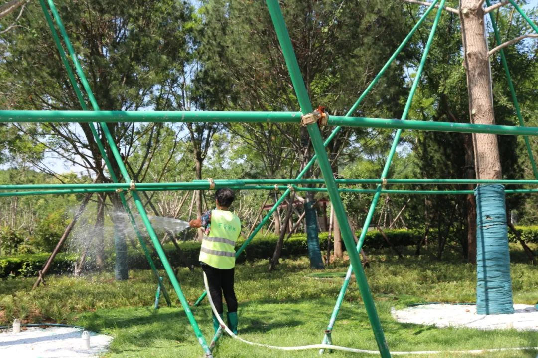 一支“規(guī)范化、精準(zhǔn)化”的養(yǎng)護(hù)隊伍養(yǎng)護(hù)著景區(qū)的一草一木,對佛慧山牌坊兩側(cè)的銀杏樹、林蔭大道兩側(cè)的五角楓、境水映秀噴泉四周等區(qū)域進(jìn)行精細(xì)化養(yǎng)護(hù)管理,澆水方式上采用噴灌帶、人工管道澆灌等相結(jié)合方式。根據(jù)現(xiàn)場情況采用高空作業(yè)車、粉碎車等先進(jìn)的園林機(jī)械設(shè)備,提高了精細(xì)化養(yǎng)護(hù)管理,打造出一片生機(jī)勃勃、綠樹成蔭、花團(tuán)錦簇的景色。