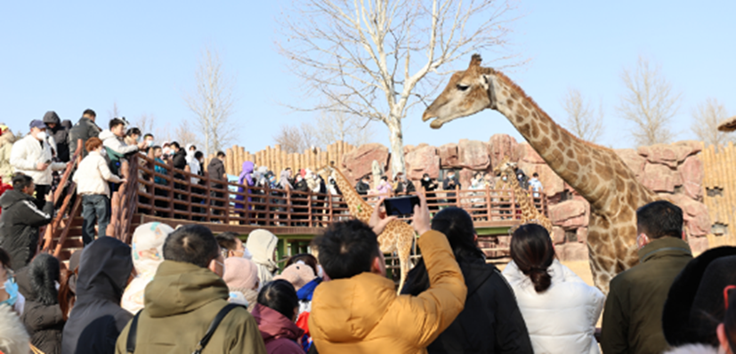 為增加游客游園體驗,景區(qū)利用場地、動物資源優(yōu)勢結(jié)合“動物”“遇見”兩個主題,打造“動物遇見年貨集市街”“動物遇見光影舞臺劇”“動物遇見冰雪嬉雪樂園”等超多主題活動,同時,景區(qū)還在東門內(nèi)廣場設(shè)有萌兔互動及國風(fēng)服裝租賃,深受游客喜愛。春節(jié)期間,濟(jì)南野生動物世界接待游客21.8萬人次,是去年的11.5倍。