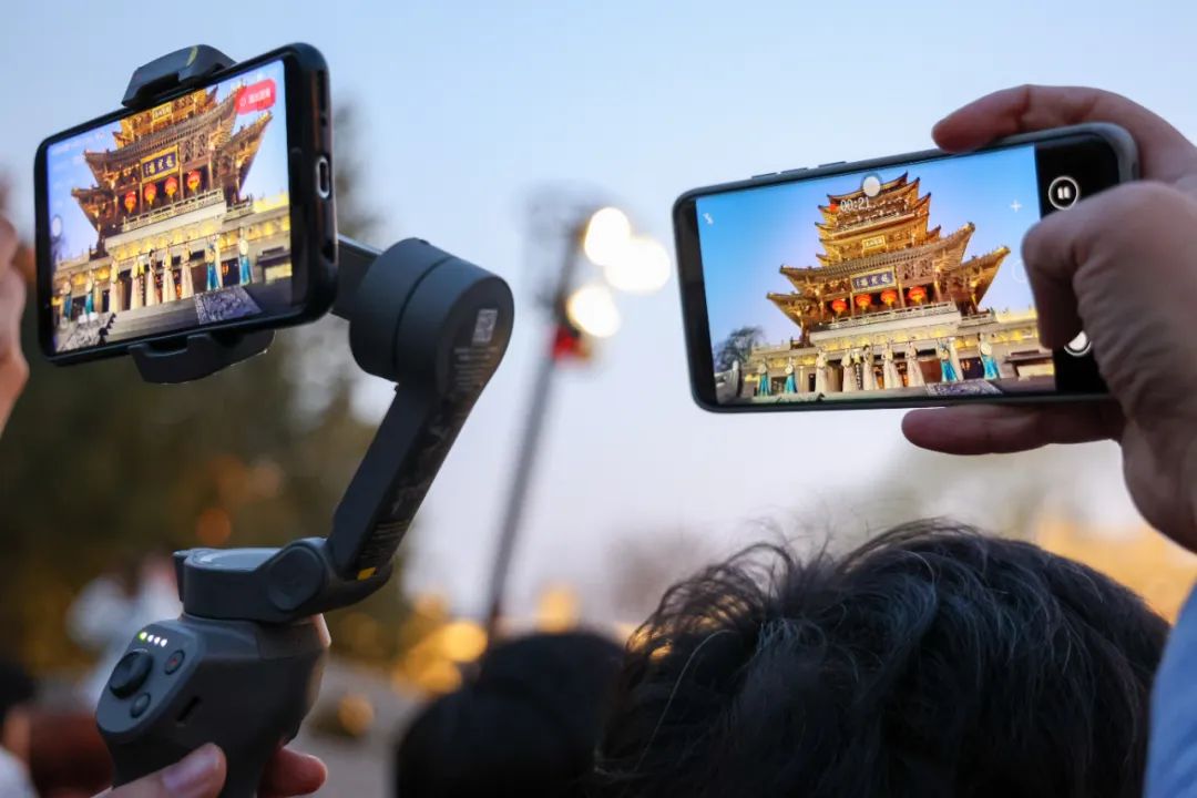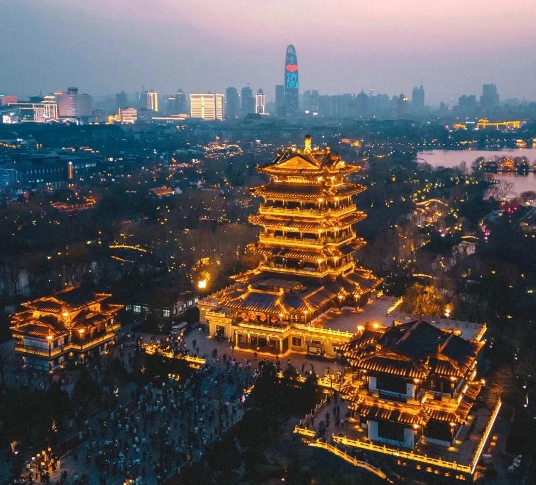 兩曲奏罷,四周重回萬籟俱寂,剛剛發(fā)生的一切如夢似幻,就在大家還沉浸于音樂構筑的美妙意境時,超然樓燃燈時刻悄然而至,先從一點再到一面后到一片,在燈光映襯下,超然樓通體金碧輝煌、格外璀璨,身臨其境像是夢境像是仙境,不禁令人如癡如醉,扮作“古”人不會作詩亦會吟:驚蟄春來早,超然網(wǎng)上爆;文藝伴快閃,致遠向美好。在人們心中,點亮了超然樓,就是點亮了心燈,點亮了泉城,也點亮了未來。