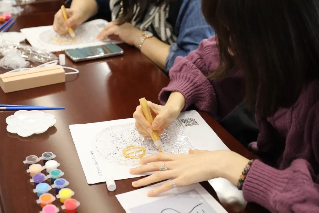 在老師的悉心指導(dǎo)下,女同胞們充分發(fā)揮自己的想象力和創(chuàng)造力,一邊認(rèn)真地學(xué)著,動手描繪著自己心儀的圖案,一邊互相切磋,交流色彩搭配和造型要素,活動現(xiàn)場歡聲笑語、其樂融融。