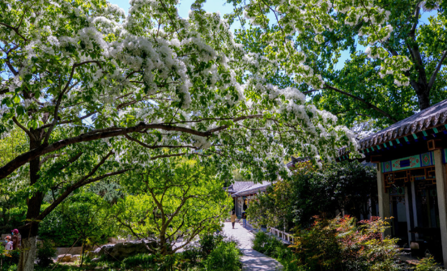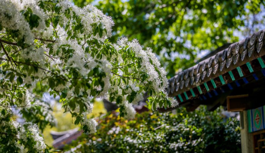 趵突泉景區(qū)的流蘇也已靜靜開放