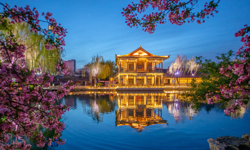 四月趵突泉景區(qū)和大明湖景區(qū)紫藤花盛開