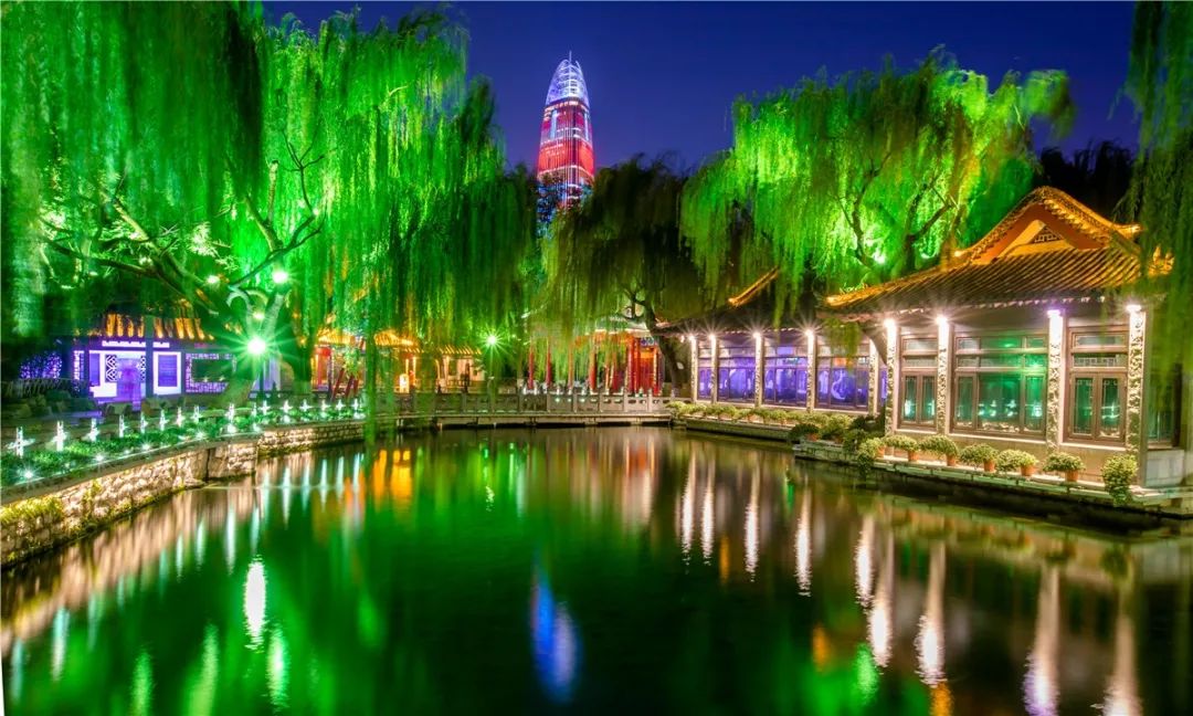 在濟南,看泉城高樓林立,燈火璀璨;看明湖燈光盛宴,美輪美奐;賞泉城廣場音樂噴泉,如癡如醉;乘游船于護城河上,流連忘返;看超然樓亮燈,體驗網(wǎng)紅打卡游玩新方式。