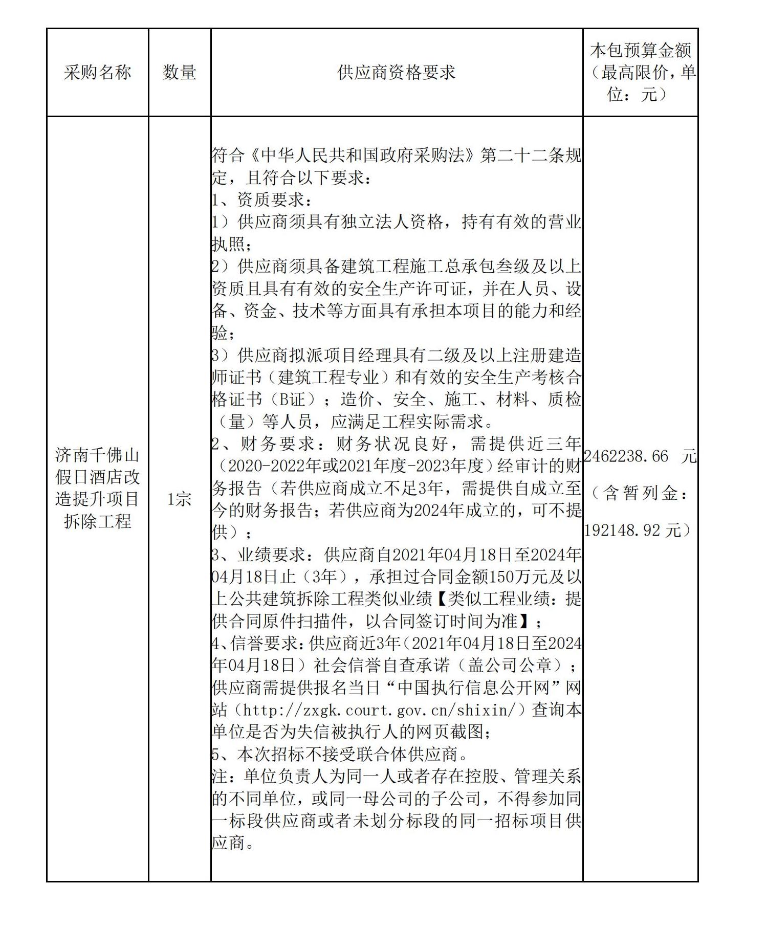 二、采購項目名稱:濟南千佛山假日酒店改造提升項目拆除工程