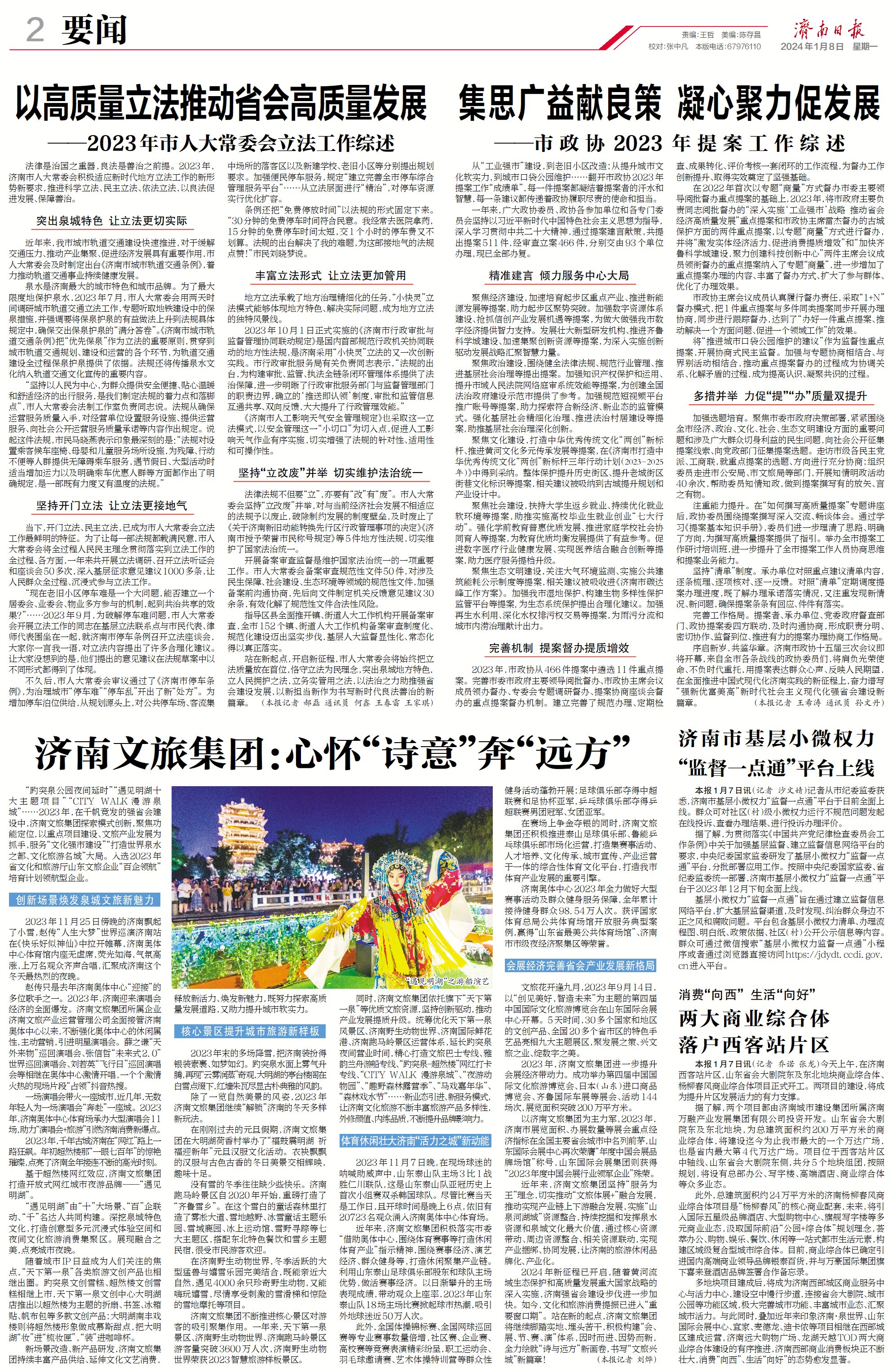 2024年1月8日,《濟(jì)南日?qǐng)?bào)》要聞版刊發(fā)《濟(jì)南文旅集團(tuán):心懷“詩(shī)意”奔“遠(yuǎn)方”》的文章,采寫記者為劉燁。文章寫到,2023年,在千帆競(jìng)發(fā)的強(qiáng)省會(huì)建設(shè)中,濟(jì)南文旅集團(tuán)探索模式創(chuàng)新,聚焦功能定位,以重點(diǎn)項(xiàng)目建設(shè)、文旅產(chǎn)業(yè)發(fā)展為抓手,服務(wù)“文化強(qiáng)市建設(shè)”“打造世界泉水之都、文化旅游名城”大局。如下為稿件詳情——