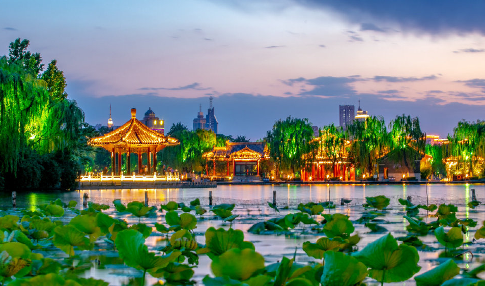 白天的大明湖,萬般風(fēng)情盡在不言之中,但到了夜晚,太陽落下柳梢的時候,大明湖才開始展現(xiàn)它別有情趣的另一面!