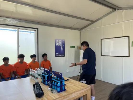 在球隊(duì)出征大連參加中國(guó)足協(xié)青少年足球錦標(biāo)賽(職業(yè)俱樂部U17組)前的最后一堂訓(xùn)練課上,崔鵬便親身示范,為隊(duì)員灌輸了職業(yè)球隊(duì)的這一理念。面對(duì)球員擺放不整齊的足球,他先是按照職業(yè)隊(duì)要求將足球平行排列好,并告訴球員以后在球場(chǎng)要按照這個(gè)標(biāo)準(zhǔn)擺放比賽訓(xùn)練用足球。“作為一名職業(yè)球員,來(lái)到青少年球隊(duì)做教練,我首先要讓他們經(jīng)歷一些我在職業(yè)隊(duì)經(jīng)歷過(guò)的事情。包括我們訓(xùn)練內(nèi)容要更職業(yè)化,細(xì)節(jié)也要更職業(yè)化,我需要讓他們明白在職業(yè)隊(duì)?wèi)?yīng)該怎么做,幫助他們更好地樹立發(fā)展目標(biāo)”崔鵬說(shuō)道。