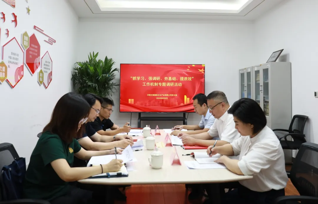 8月8日下午,濟(jì)南文旅集團(tuán)黨委委員、副總經(jīng)理王鋒帶隊(duì)赴濟(jì)南文旅國(guó)際文化產(chǎn)業(yè)有限公司開展“抓學(xué)習(xí)、強(qiáng)調(diào)研、夯基礎(chǔ)、提質(zhì)效” 工作機(jī)制專題調(diào)研,公司黨支部書記、董事長(zhǎng)雷凱及支委會(huì)成員參加調(diào)研。